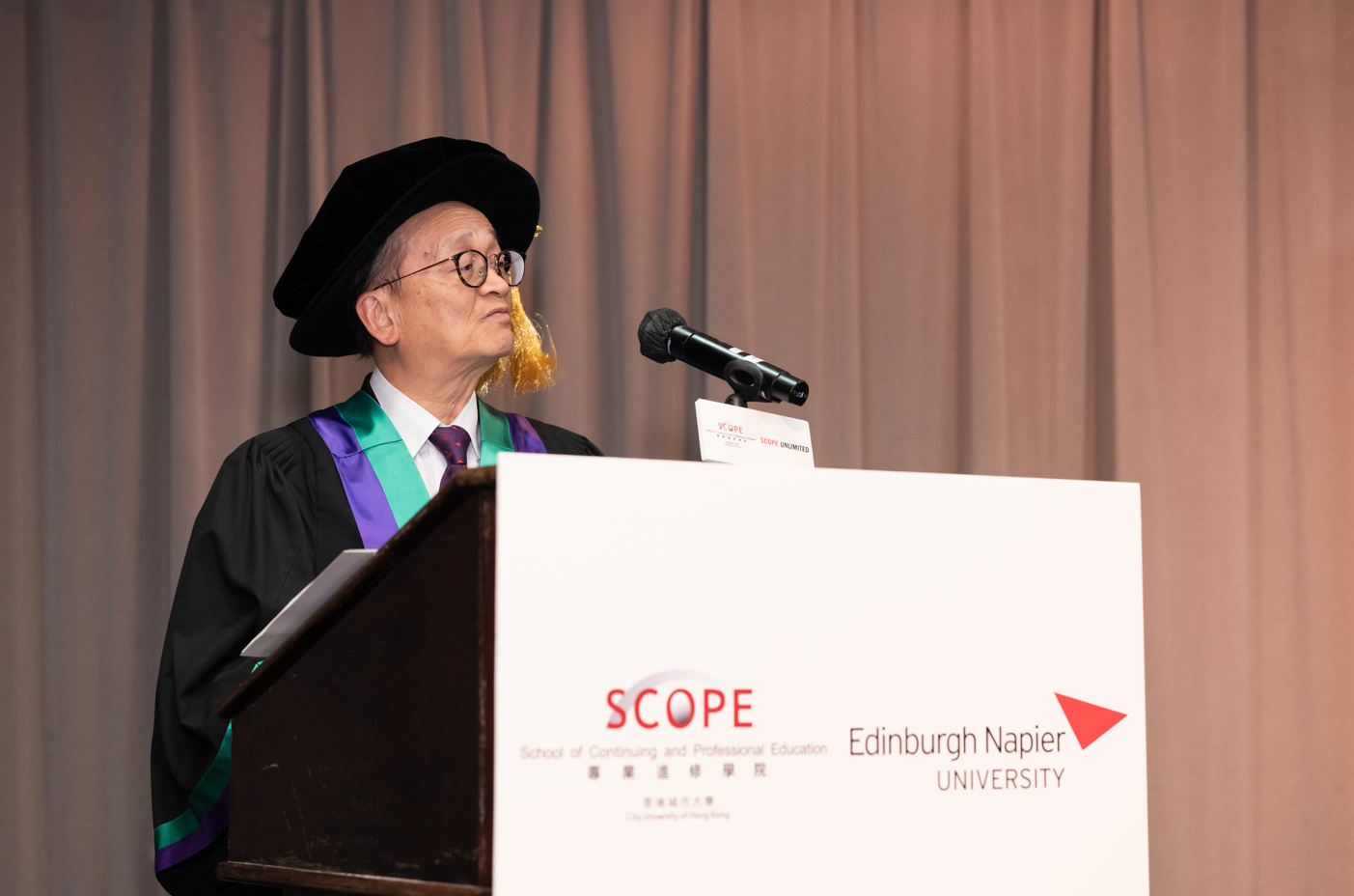 Dr. Louis Ma, Director of CityUHK SCOPE, kicked off the event with an inspiring speech. He congratulated the graduates on their exceptional accomplishments and expressed his confidence that the skills, knowledge, and connections they gained at SCOPE will empower them to face future challenges and make meaningful contributions to society.