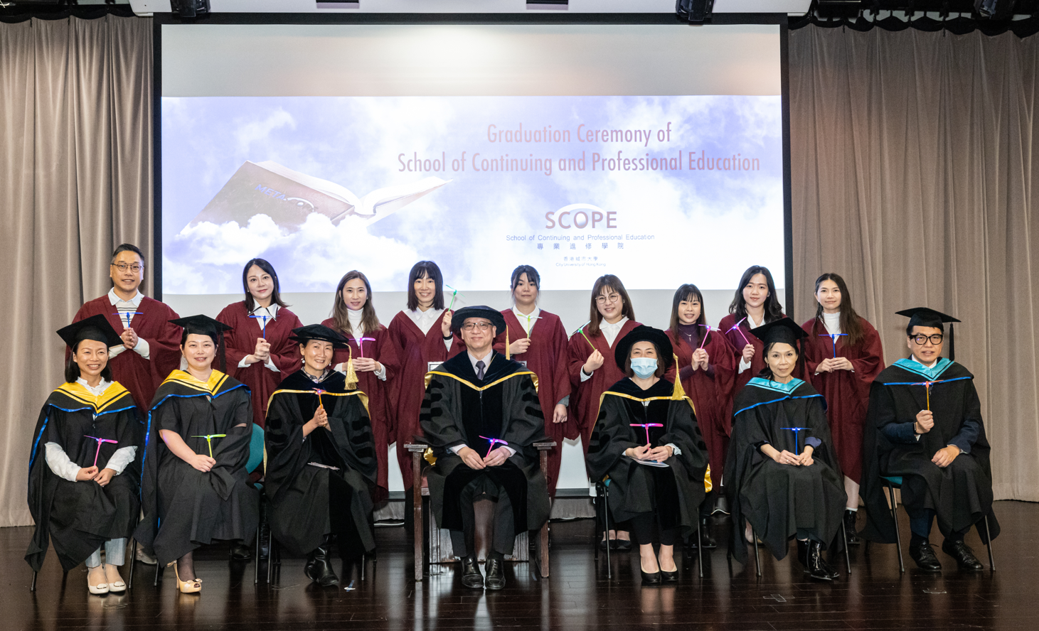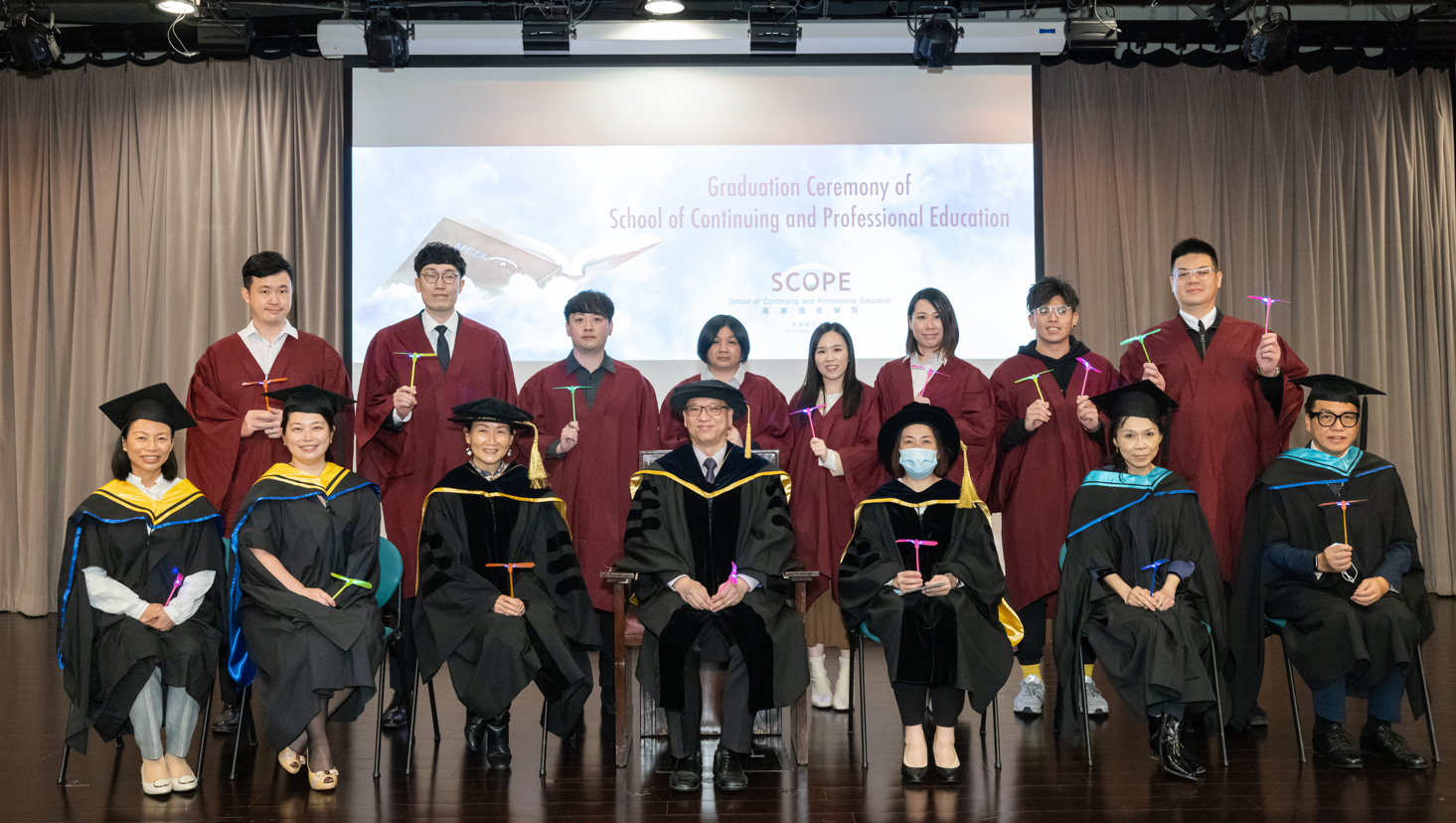 The SCOPE Advanced Diploma Graduation Ceremony 2022 was successfully held on 7 January 2023 in Joseph Lee Hall at the City University of Hong Kong.